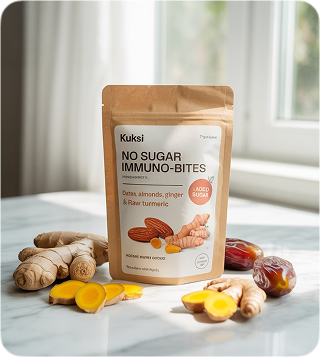 At Kuksi, we bring you nature’s purest superfoods—almonds, turmeric, ginger, coconut, cashews, and dates. Each ingredient is chosen for its time-honored benefits, from boosting immunity and energy to supporting gut health and skin vitality. Crafted with care, they deliver everyday nourishment for modern wellness.